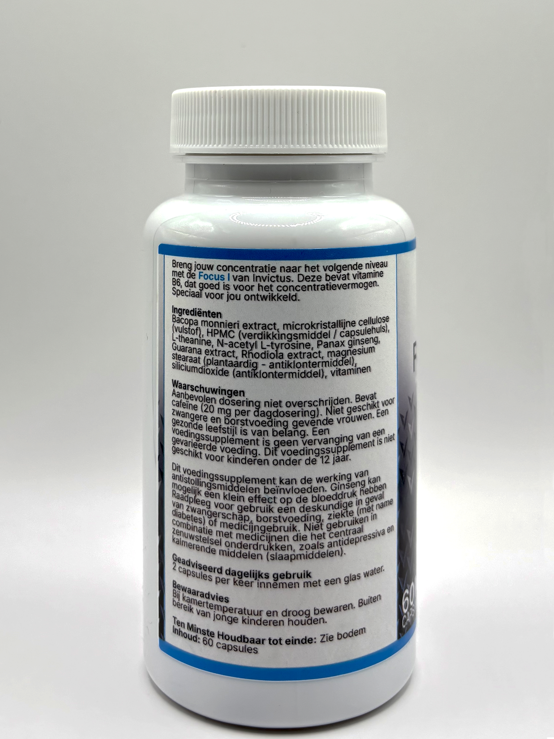 Breng jouw concentratie naar het volgende niveau met de Focus I van Invictus. Deze bevat vitamine B6, dat goed is voor het concentratievermogen. Speciaal voor jou ontwikkeld.